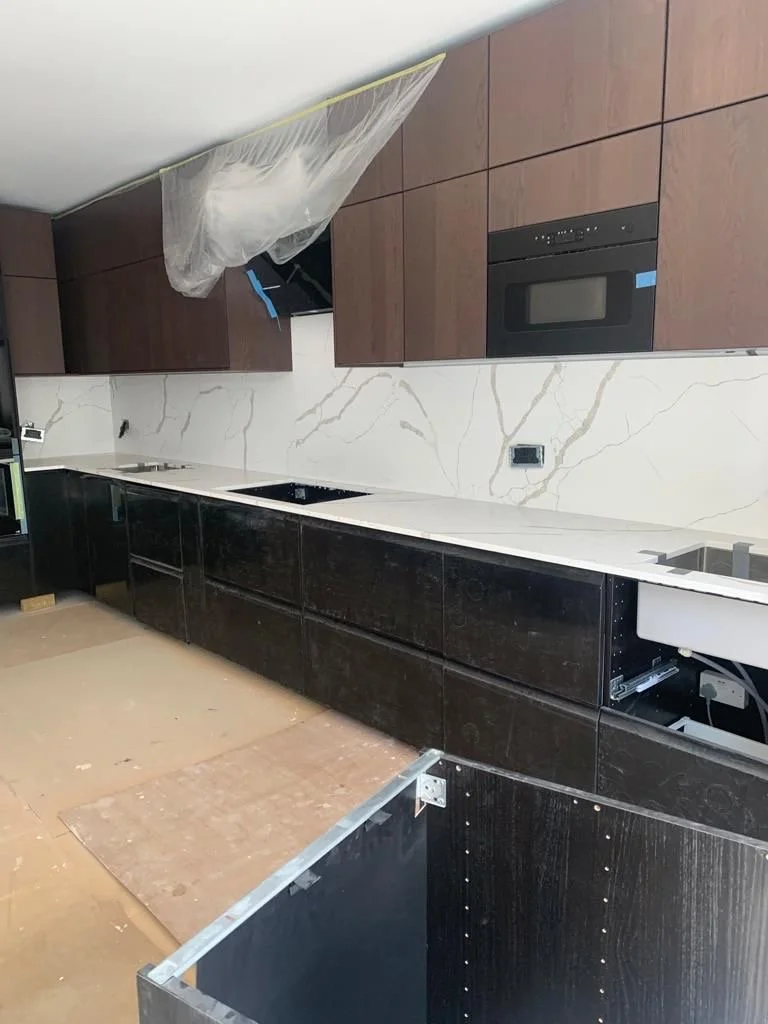 Our team will arrive at your home with your freshly-cut worktop pieces to have them fitted for you. Our skilled team ensures every piece is perfectly aligned and securely fitted, delivering a seamless finish that brings your kitchen design together.