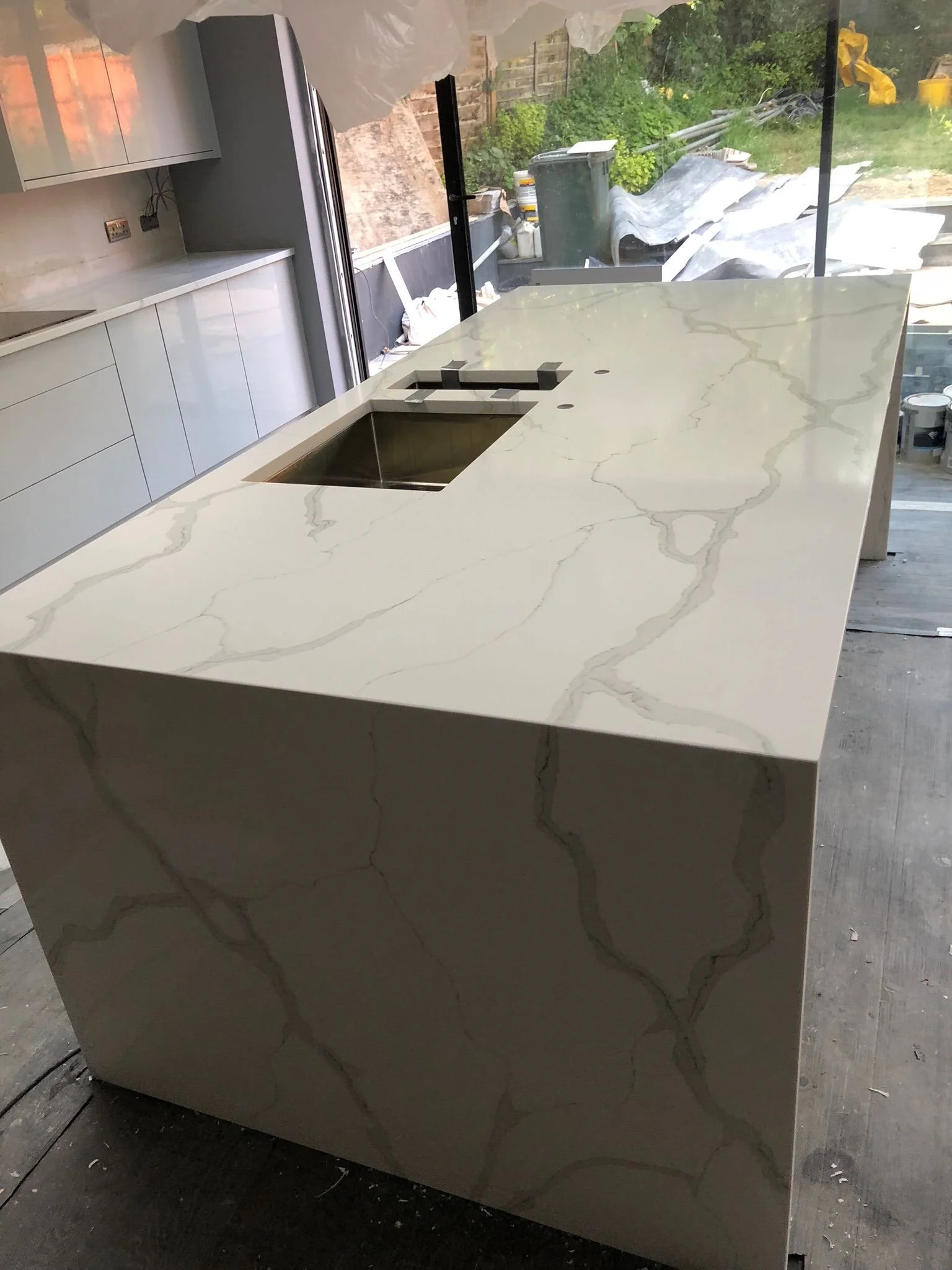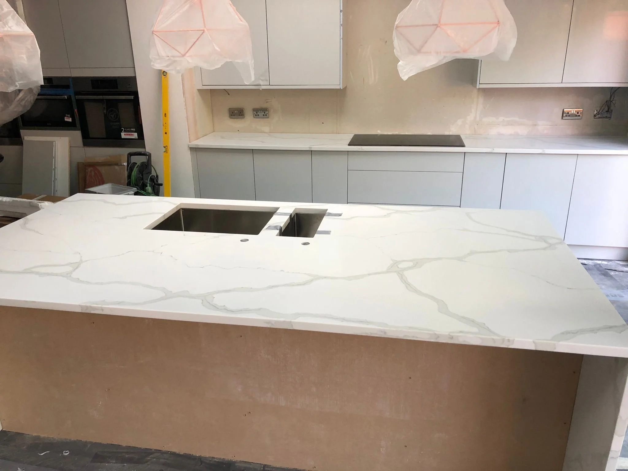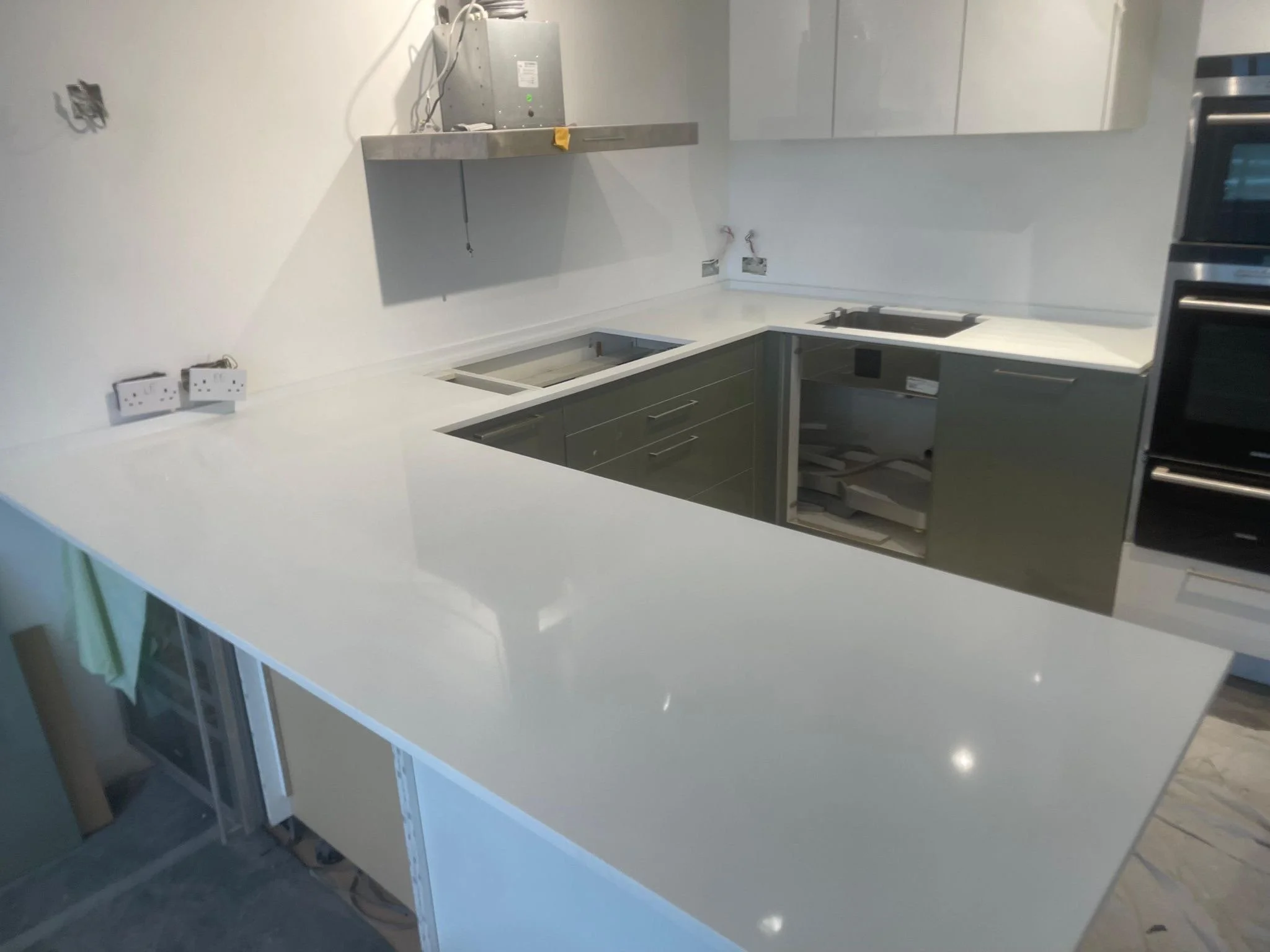 All fabricating is completed in our workshop. In our factory, our stonemasons use highly specialised equipment to cut your quartz, granite, and marble worktops to any shape and size you require. Your material arrives at our workshop and we thoroughly inspect each slab to be sure there are no defects.